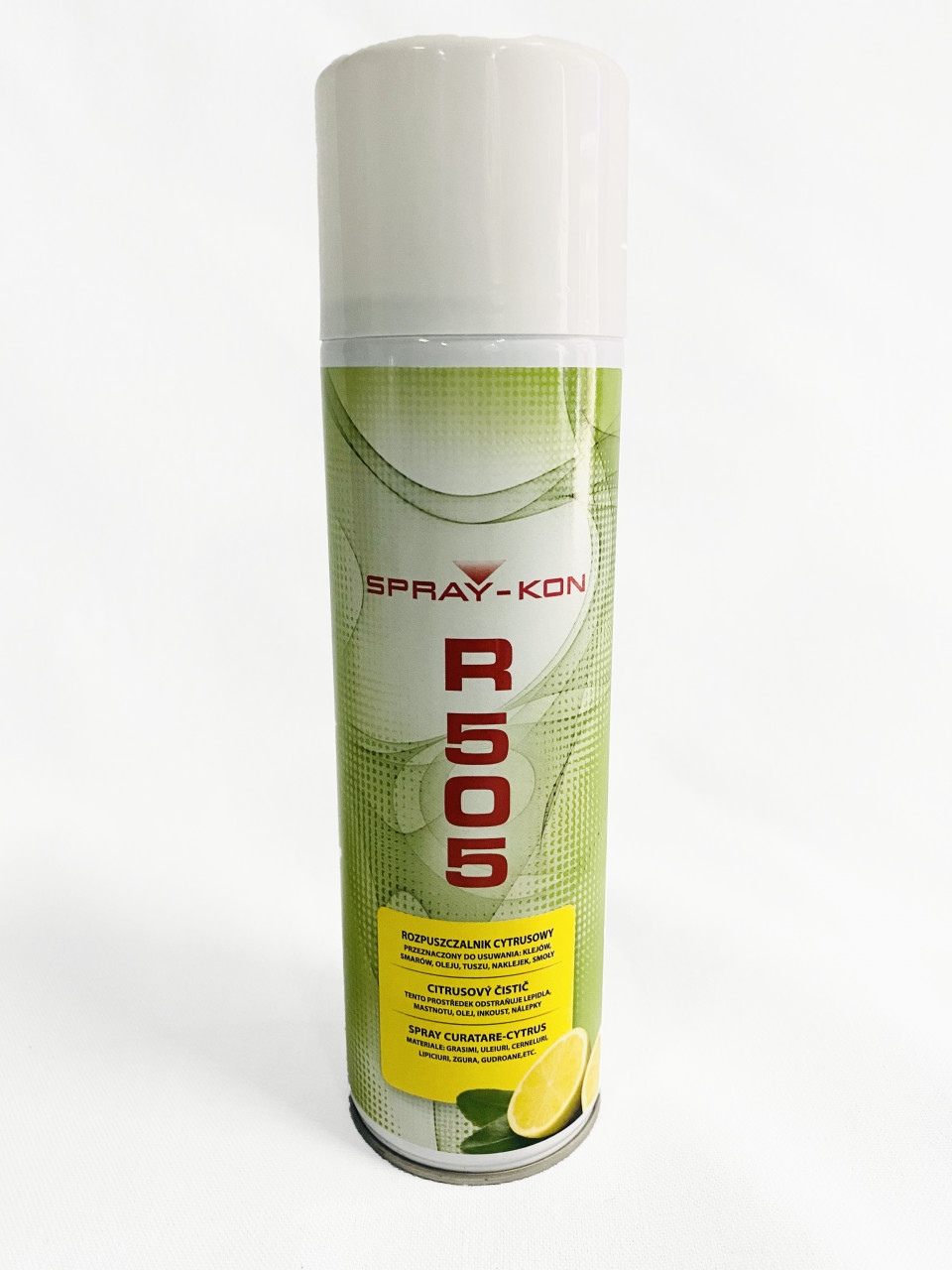 CITRÓNOVÝ ČISTIČ SPRAY KON R 505, čistič odstraňuje lepidlo Spray Kon, mastnotu, olej , atrament, nálepky, deht a iné nečistoty. Čistič z citrusových olejov čistí a zároveň zanecháva príjemnú arómu. Vhodný na čistenie lakovaných povrchov, skla, porcelánu, betónu a väčšiny plastových a umelohmotných materiálov.