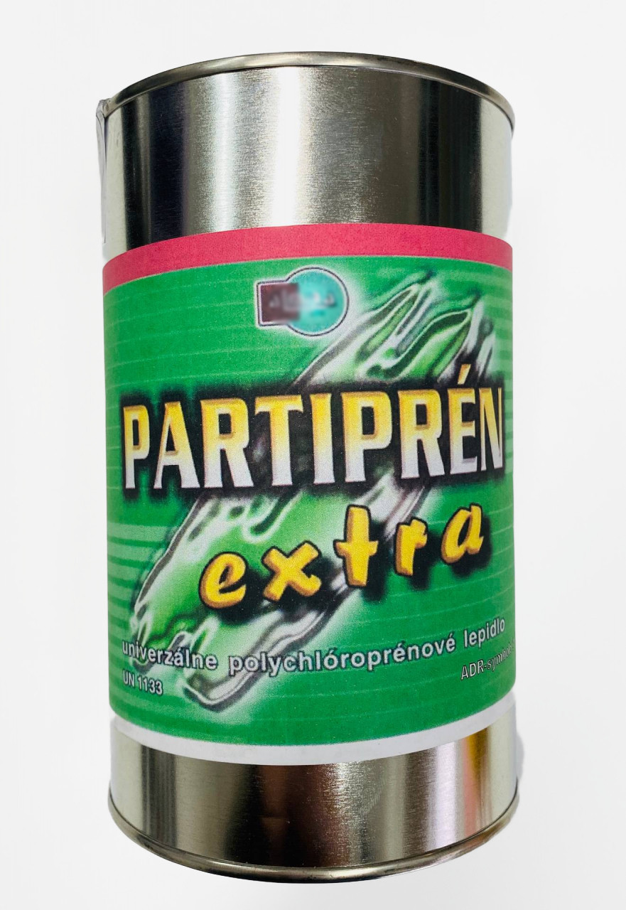 PARTIPREN EXTRA, lepidlo je určené na spojovanie takmer všetkých materiálov so suchým povrchom okrem polyolefínov, teflónu a pod. Vhodné najmä na podlahoviny, betón a rôzne stavebné materiály, gumu, kožu, papier a všetky savé materiály. Doporučuje sa obojstranný náter a zalisovanie po zasušení filmu. V ponuke balenia 0.9kg a 3,5 kg.